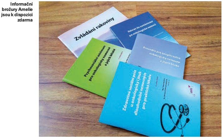 Amelie vydává brožury, které distribuuje zdarma pacientům a do všech komplexních onkologických center (KOC), menších nemocnic, pacientským organizacím i praktickým lékařům.