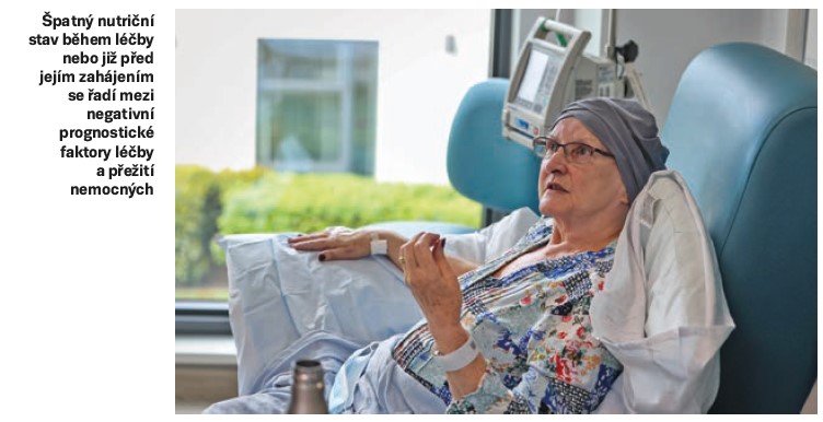 Pro nádorovou kachexii je charakteristický progresivní úbytek svalové hmoty. Dochází k omezenému vstřebávání živin. Při vysokodávkované chemoterapii trpí nauzeou nebo zvracením až 80 % pacientů. Častým vedlejším účinkem onkologické léčby je sucho v ústech. Narůstá riziko slizniční infekce a objevuje se bolest při konzumaci stravy. Průjem se vyskytuje téměř u poloviny pacientů léčených vysokodávkovanou chemoterapií a radioterapií (Tuncer et al., 2012). Podávání cytostatik může na několik dní omezit nebo zastavit regeneraci střevní sliznice. Často se objevuje slizniční toxicita postihující různé části gastrointestinálního traktu. Je významně narušena slizniční bariéra gastrointestinálního traktu, což navyšuje riziko systémových infekčních komplikací negativně ovlivňujících výživový stav nemocného (Lalla et al., 2019).