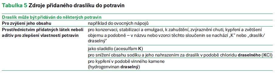 → Nejvíce draslíku je obsaženo v sušených potravinách (sušené ovoce, rozinky, sušené houby a luštěniny).