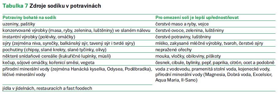 Určitá, ale poměrně malá část sodíku je do pokrmů přidávána při kuchyňské úpravě a při dosolování v samotných domácnostech. Představuje z celkového denního přívodu sodíku pouze 10–20 %. Téměř zanedbatelná část je pak přirozeně obsažena v základních surovinách (tab. 7).