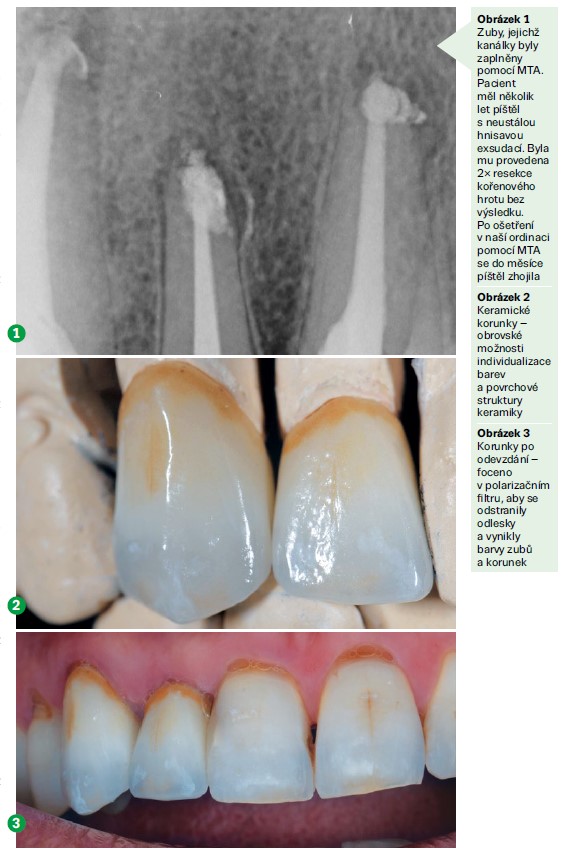Souhrn: Současné zubní lékařství se ubírá především ve směru prevence, estetiky a biokompatibilních materiálů. Pro kvalitní výsledek v ošetření chrupu je důležitá spolupráce čtyř lidí. Ti si navzájem musí důvěřovat, spolupracovat, vzájemně si naslouchat a respektovat se. Jsou to – pacient, zubní lékař, dentální hygienistka a zubní technik.