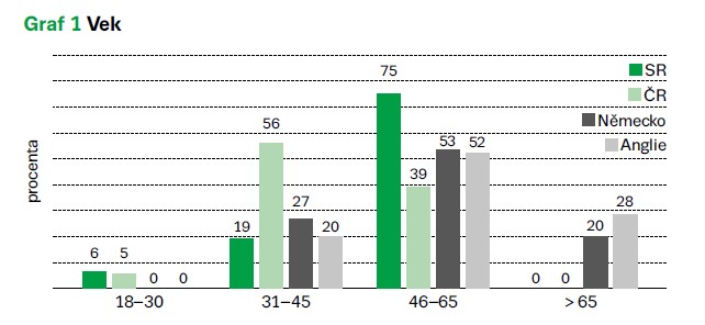 Najpočetnejšiu skupinu pacientov v kategórii vek tvorili pacienti vo vekovom rozmedzí 46–65 rokov (graf 1). Podľa typu ochorenia na výskume participovalo najviac pacientov s končatinovým postihnutím, celkovo n = 52 (70 %) z celkového počtu n = 74 (100 %) pacientov (graf 2).