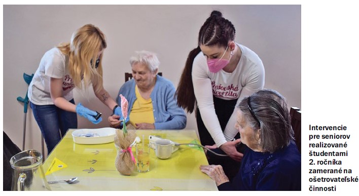 Dňa 14. marca 2022, v čase od 9:00 do 13:00 hodín boli realizované študentami 2. ročníka bakalárskeho študijného programu v odbore ošetrovateľstvo intervencie s názvom Podporné aktivity pre seniorov v zariadení pre seniorov – SeniorVital Sabinov. Intervencie boli zamerané na ošetrovateľské činnosti s cieľom podpory zdravia: meranie tlaku krvi, telesnej teploty, pulzu, saturácie, glykémie.