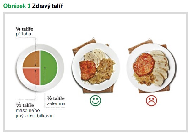 Pokud klient nechce příjem energie a živin počítat (lze využít například program Sebekoučink na www.stobklub.cz), může se pro začátek při sestavování denních jídel držet jednoduchého pravidla – takzvaného zdravého talíře (obr. 1).