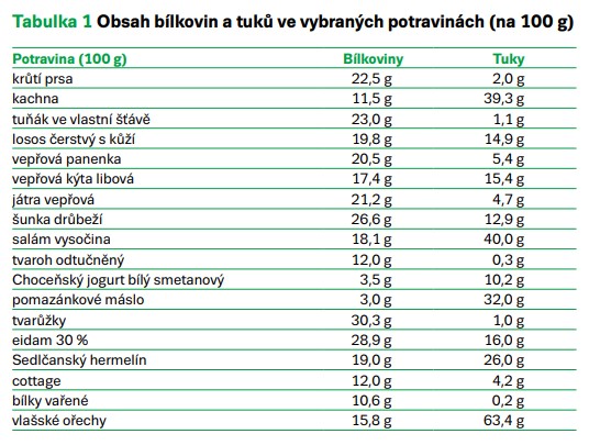 Při redukci hmotnosti je klíčový dostatečný příjem bílkovin, které mají nejvyšší sytící schopnost a také nejvyšší postprandiální termogenezi. Pacient je dostatečně nasycen i při nižším energetickém příjmu. Nicméně je třeba zmínit, že při redukci je třeba dbát na výběr potravin bílkovinného původu, které zároveň neobsahují velké množství tuku (Hainer, 2021) (tab. 1,2).
