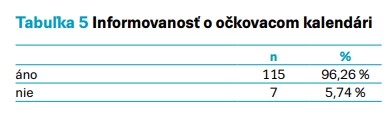 Informovanosť rodičov o očkovacom kalendári