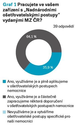 Na otázku „Pracujete ve vašem zařízení s NOP vydanými MZ ČR?“ odpovědělo 35,9 % respondentů ANO, využíváme je a plně aplikujeme v ošetřovatelských postupech, 64,1 % respondentů odpovědělo ANO, využíváme je a částečně zapracujeme některá doporučení v ošetřovatelských postupech nemocnice (graf 1).