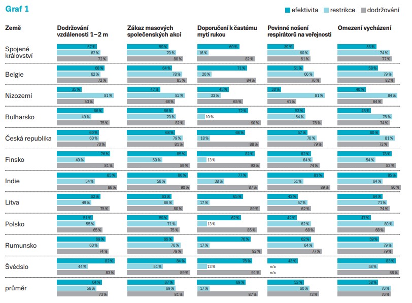 Vnímání účinnosti, restriktiva a dodržování opatření proti šíření pandemie covidu-19 – mezinárodní srovnávací studie