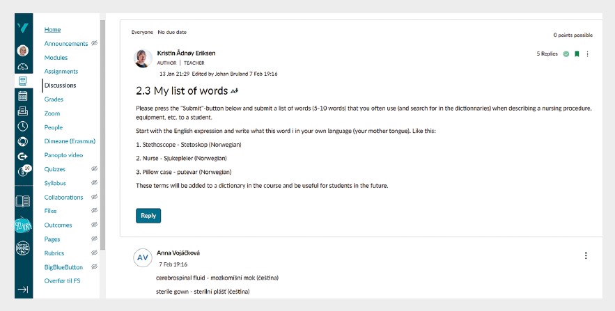 Struktuře a náplni kurzu předcházelo mnoho hodin diskuzí, a to jak online, tak osobně při pracovních návštěvách u nás, na 3. LF UK, tak na HVL Haugesund a Western Norway University v Bergenu. Na začátku bylo nutné identifikovat potřeby studujících v zahraničním zdravotnickém zařízení i mentorek a mentorů, kteří studenty z jiných zemí na praxích provázejí.