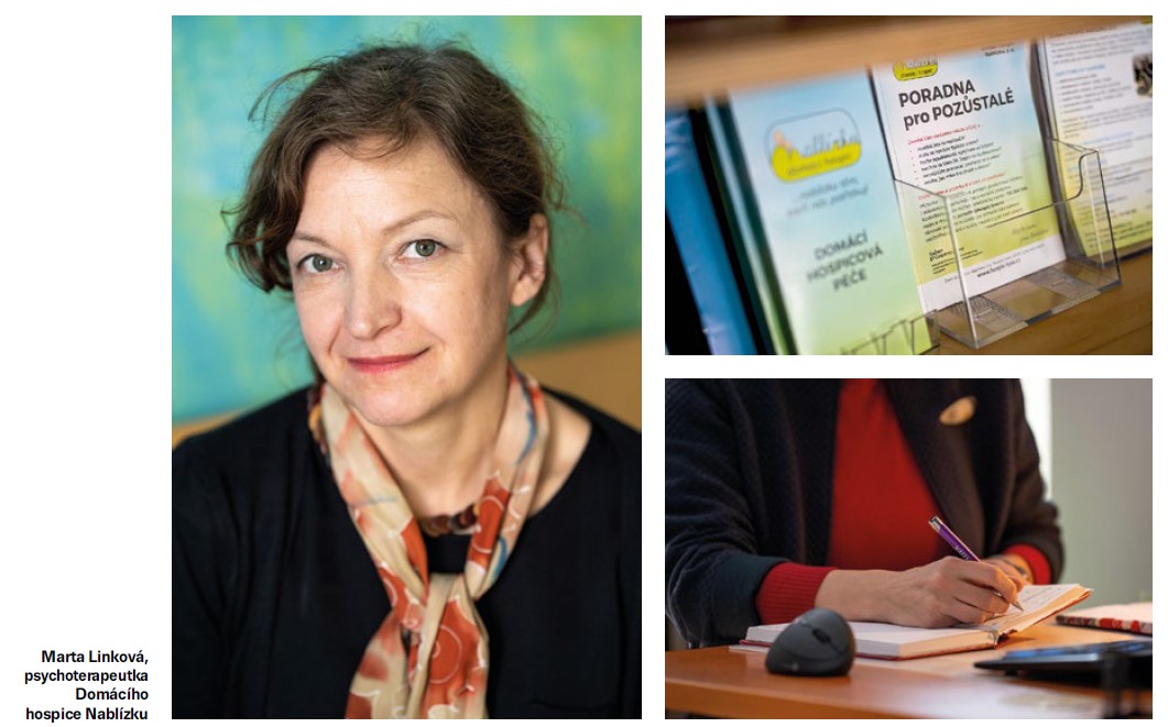 S potřebou pozůstalých vyhledat odbornou pomoc se pracovníci hospicových, poradenských a terapeutických služeb setkávají stále častěji. Společnost smrt zcela vytěsnila ze života, přestaly se pořádat pohřby, vymizely rituály spojené se smrtí a smrt se odsunula do nemocnic a zdravotnických zařízení. „Dnešní člověk se v kontaktu se smrtí dostává do zcela hraničních situací, nicméně má již povědomí o tom, že je dobré vyhledat psychologickou pomoc, uvědomuje si, že je to praktické, že se mu uleví,“ podotýká Marta Linková.