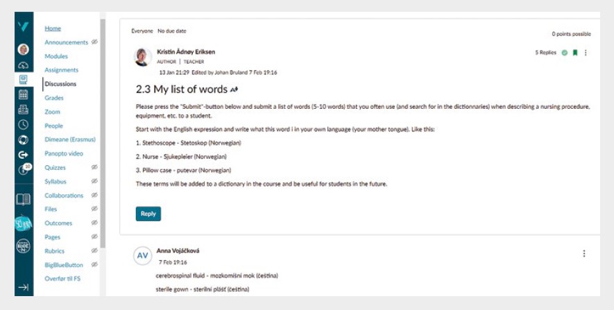Struktuře a náplni kurzu předcházelo mnoho hodin diskuzí, a to jak online, tak osobně při pracovních návštěvách u nás, na 3. LF UK, tak na HVL Haugesund a Western Norway University v Bergenu. Na začátku bylo nutné identifikovat potřeby studujících v zahraničním zdravotnickém zařízení i mentorek a mentorů, kteří studenty z jiných zemí na praxích provázejí.