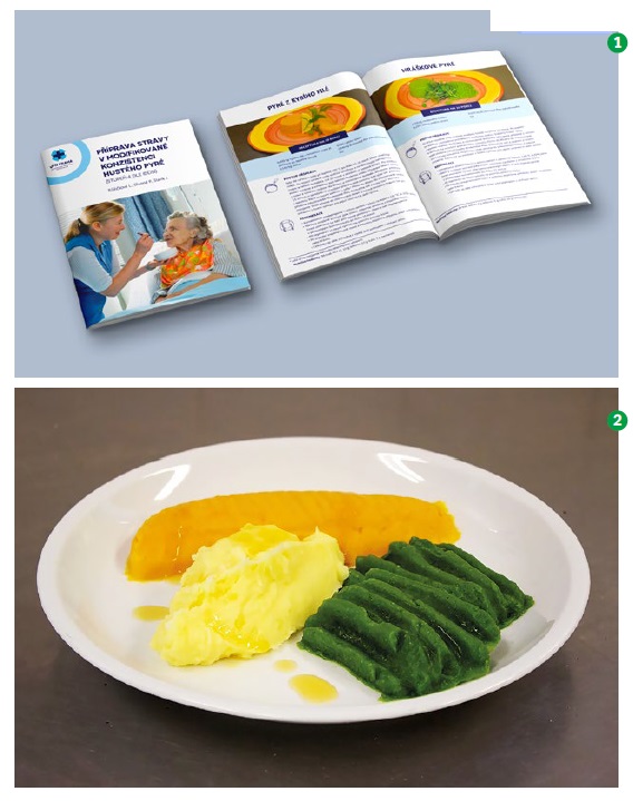Potíže s polykáním a mukozitida přináší mnoho omezení a k tomu často patří nutnost změny stravovacích zvyklostí, omezení ve výběru potravin a s tím spojené snížení pestrosti jídelníčku. Ve Všeobecné fakultní nemocnici (VFN) v Praze byl vypracován systém stravování pro jedince s dysfagií pomocí indikace diety s úpravou konzistence stravy dle mezinárodního standardu IDDSI (International Dysphagia Diet Standardisation Initiative). Mezi nejvyužívanější typy modifikované stravy podle této klasifikace patří mixovaná dieta v konzistenci hustého pyré, stupeň 4 dle IDDSI, u které je kladen velký důraz nejen na mechanické zpracování jídla, ale i na senzorické a chuťové vnímání konzumenta. Ve VFN byla vydána publikace Příprava stravy v modifikované konzistenci hustého pyré (Růžičková et al., 2022), která přináší jednoduchý návod, jak připravit měkkou stravu usnadňující polykání zcela bez potřeby kousání nebo žvýkání. Jednotlivé komponenty pokrmu jsou servírovány na talíř zvlášť s důrazem na barevnou i tvarovou estetičnost a vyniknutí vůně i chuti jednotlivých částí. Do většiny jídel je nezbytné přidávat speciální zahušťovadlo Bindemittel Plus od firmy Dr. Oetker, díky němuž strava drží tvar a po vložení do úst se lehce rozplývá. Recepty jsou na přípravu jednoduché a časově nenáročné. Využívají se potraviny běžně dostupné, které nejsou finančně náročné, jak pro jednotlivce v domácnosti, tak i pro zařízení, která stravu při poruchách polykání poskytují. K přípravě stravy je možné ve vhodných případech využívat i potraviny, které byly prvotně použity pro přípravu vývaru, například zeleninu nebo maso, čímž se chováme v souladu s principy udržitelnosti. S ohledem na tento postup je nutné respektovat všechna hygienická a bezpečnostní pravidla. Receptář může pomoci ke zkvalitnění života těch, kteří musí dočasně nebo dlouhodobě dodržovat speciální úpravu stravy, zpříjemní jim požitek z jídla a pomůže snížit riziko podvýživy. Kuchařka pro pacienty s poruchou polykání je ke stažení na www.vfn.cz v sekci Pro odborníky.