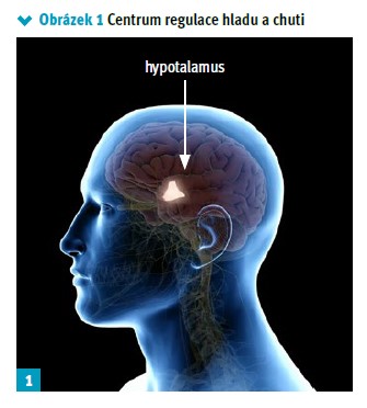 Dlouho jsme si i my lékaři mysleli, že chuť a hlad se dají do značné míry ovládnout vůlí, a tedy když má někdo kila navíc a nedokáže trvale zhubnout, je to člověk se slabou vůlí nebo člověk, který se prostě jen málo snaží. Dnes už víme, že chuť a hlad jsou regulovány pomocí hormonů. V mozku existuje centrum regulace hladu a chuti, které sídlí v jen několik milimetrů velkém hypotalamu v zadní části hlavy (obr. 1).