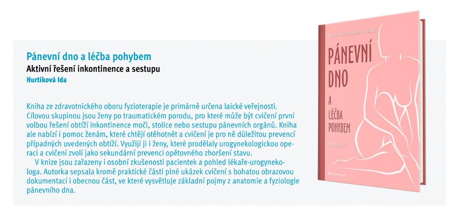 Další podrobné informace naleznete v knize Pánevní dno a léčba pohybem. Je příručkou pro pacientky, ale také pro jakoukoli ženu, která potřebuje s pánevním dnem pomoci. Pokud si není jistá, alespoň jedna návštěva u fyzioterapeutky, která umí vyšetřovat pánevní dno, je vhodná. Existují specializované fyzioterapeutické ambulance, kde jim rádi pomohou. A v případě problémů na nic nečekat a navštívit je co nejdříve.
