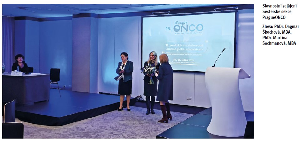 Sesterskou sekci zahájila členka organizačního výboru a koordinátorka akce PhDr. Dagmar Škochová, MBA, jménem České asociace sester (ČAS) a VFN v Praze, jež přivítala účastníky na slavnostním, již 15. PragueONCO. Slavnostní výročí připomínalo i uspořádání sálu, které nabízelo účastníkům posezení u kulatých stolů. Zahájení se zúčastnila i prezidentka ČAS