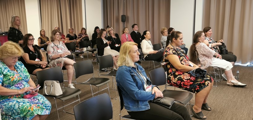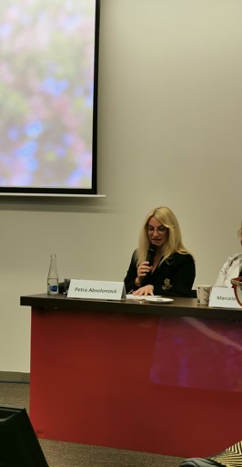 Foto: První blok přednášek s předsedajícími. Ing. Andrea Brucknerová, Marcela Gabrielová, Mgr. Lenka Šeflová.
