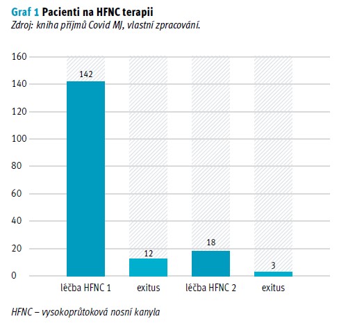 Na oddělení Covid MJ ve FNKV bylo zjištěno a potvrzeno, že HFNC je používáno jako alternativa UPV u covid pozitivních pacientů, jelikož z 247 hospitalizovaných pacientů byla u 142 nasazena terapie HFNC. Z nich 24 bylo předtím napojeno na UPV, došlo ke zlepšení vitálních funkcí, a pacient tak mohl být extubován a převeden na HFNC terapii. U zbývajících 118 pacientů byla primárně nasazena HFNC terapie.