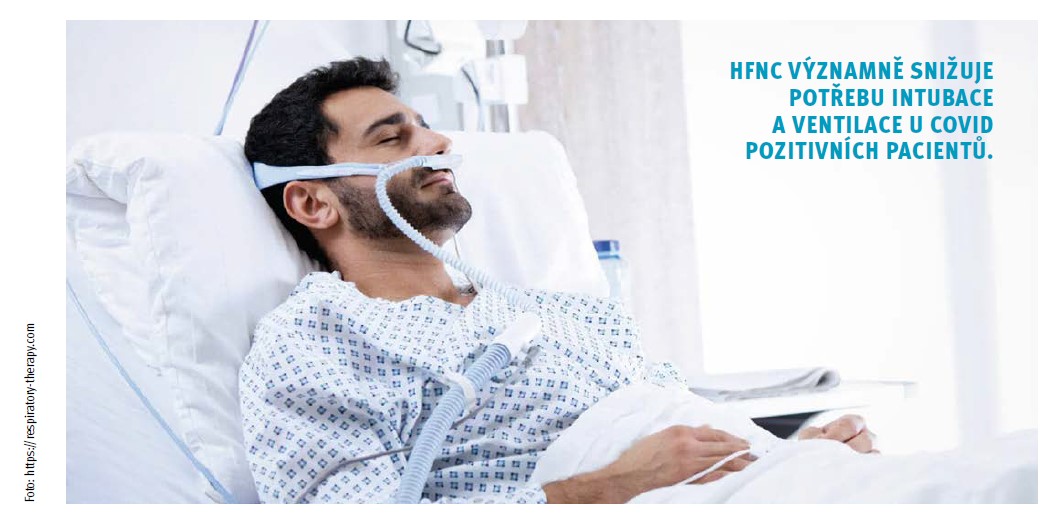 U pacientů s onemocněním covid-19 a hypoxemickým respiračním selháním HFNC snižuje potřebu navyšování léčby, indikaci k intubaci a invazivní plicní ventilaci. Respirační selhání je často doprovázeno vysokou potřebou spontánního inspiračního průtoku a také vysokou potřebou kyslíku. Dodávkou upraveného plynu s průtokem 40–60 l/min a nastavením FiO2 HFNC splňuje a často překročí požadavky pacientů (Provencher et al., 2018; Smaha et al., 2021).