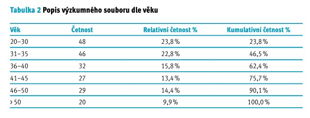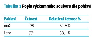 Dotazníkové šetření probíhalo na jedné krajské záchranné službě v České republice v období od dubna 2023 do října 2023. Data byla překódována v programu MS Excel a následně vložena do statistického programu Jamovi, ve kterém probíhalo porovnávání za využití lineární regrese, korelace a Mann-Whitney U testu. Základní charakteristiky výzkumného souboru popisují tab. 1 a 2, výzkumu se zúčastnilo celkem 202 respondentů.