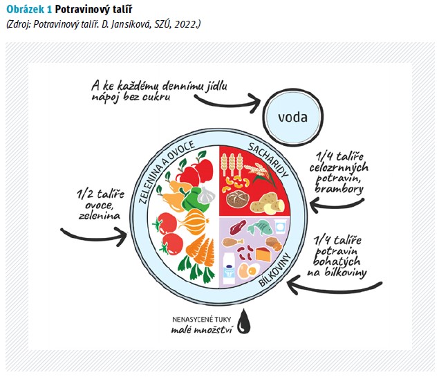 Jednoduchou pomůckou sestavení správné skladby denních jídel je potravinový zdravý talíř (obr. 1).