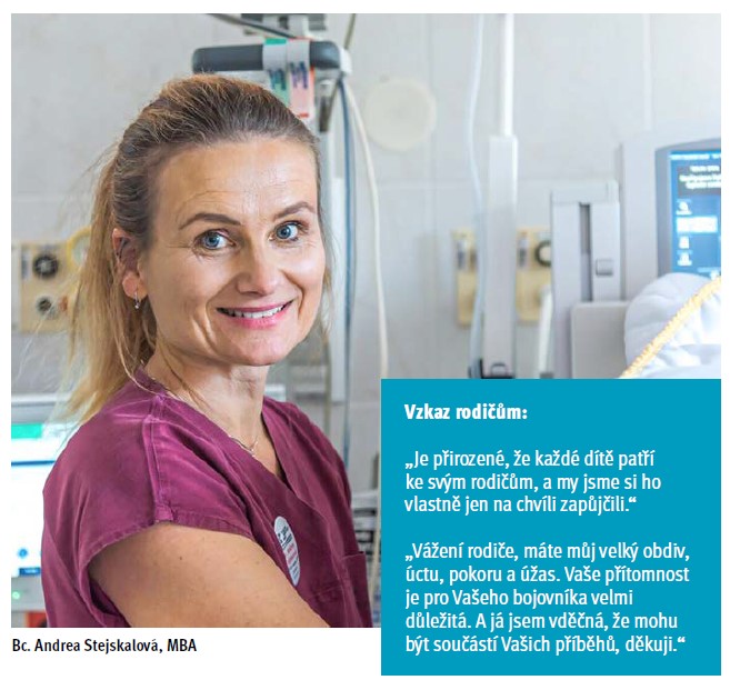 Neonatologie je nádherný obor, stále je co objevovat, zdokonalovat. Naším pacientem není jen samotné dítě, ale i celá jeho rodina. My máme to štěstí, že je můžeme provázet na jejich mnohdy náročné cestě, a to s pokorou, obdivem a úžasem. Práce dětské sestry mě neustále naplňuje a jsem moc šťastná, že mohu být účastnicí tohoto rozvoje a změny v přístupu ke křehkým bojovníkům a jejich rodičům. Mohu být součástí jejich příběhů, mnohdy zázraků.