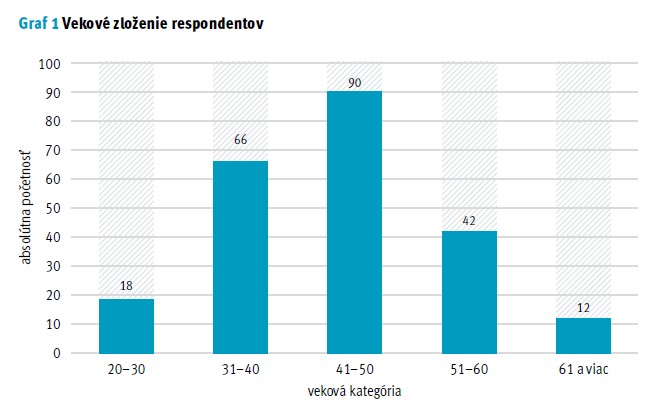 Na grafickom zobrazení je jednoznačné, že prevládalo vekové zloženie respondentov 41–50 rokov, čo korešponduje s celkovým starnutím personálu a nedostatočnou náhradou mladých zdravotníckych pracovníkov.