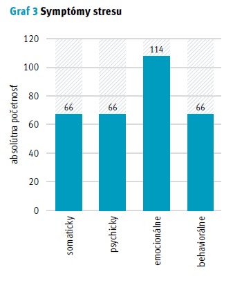 Otázka č. 28 v dotazníku č. 1 bola určená na zistenie výskytu symptómov stresu u sestier. Grafické zobrazenie (graf 3) nám predkladá prevahu emocionálnych príznakov stresu.