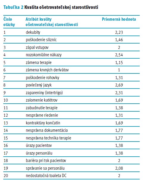 Z tabuľky 2 vyplýva, že najčastejšie sa vyskytuje nedostatok v ošetrovateľskej starostlivosti o ústnu dutinu, incidencia dekubitov, zapárenia, nozokomiálne nákazy, správanie sa personálu k pacientom, nedostatočná toaleta dýchacích ciest a zápaly invazívnych vstupov.