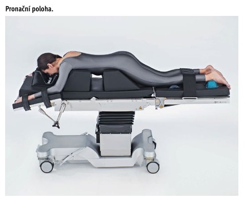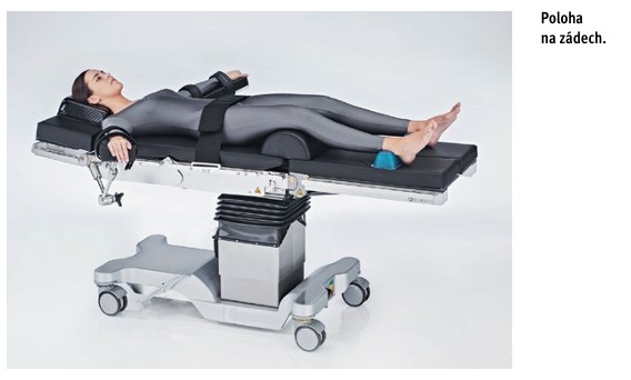 Následně je pacient uložen do operační polohy. Polohu pacienta určuje operatér dle typu operace.