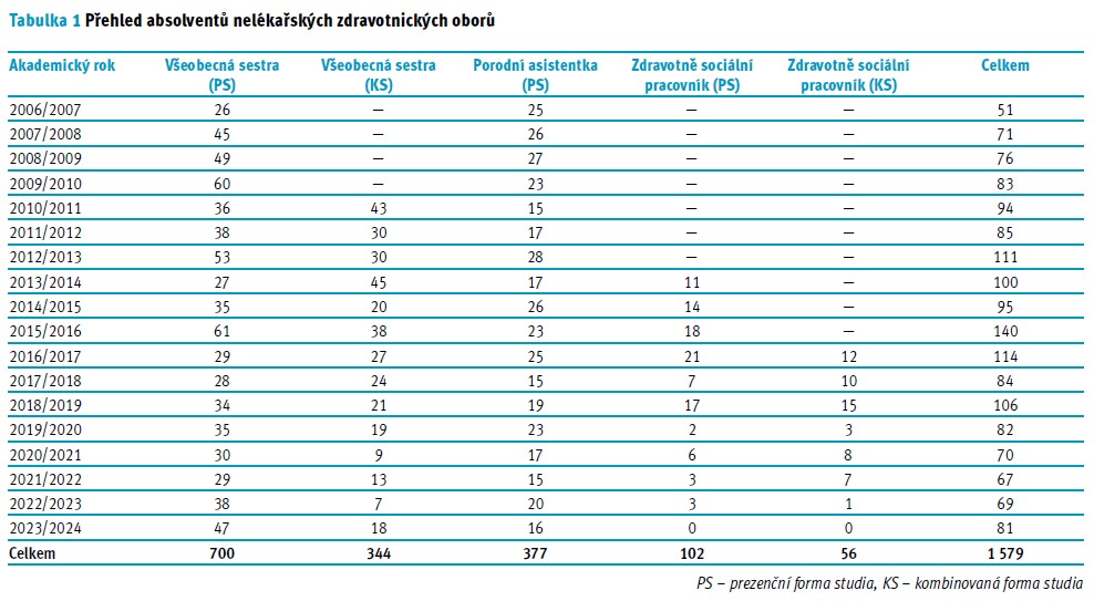 - 2008/2009: Studijní program Ošetřovatelství (od roku 2017 Všeobecné ošetřovatelství), obory Všeobecná sestra a Porodní asistence, obor Porodní asistentka, kombinovaná forma studia (3letý, bakalářský).