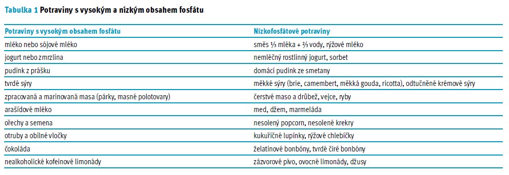 Jedno z nejdůležitějších doporučení je vynechat z jídelníčku instantní potraviny, jíšky, polévky a polotovary (sekaná, karbanátky). Kupovat jen takové doplňky stravy a vitaminy, které doporučí lékař. Vynechat z jídelníčku kupované lahůdkové pomazánky – používají se do nich tavené sýry a ochucovadla s vysokým obsahem fosforu. Velký obsah fosforu mívají tvrdé a tavené sýry, proto je vhodné místo nich zařazovat čerstvé sýry (žervé, cottage, tvaroh, lučina). Nutné je vybírat kvalitní uzeniny s vysokým obsahem masa a malým množstvím soli (např. šunku nejvyšší jakosti). Z ryb vybírat jen ty, které nemají jedlé kosti, jako jsou např. krabí tyčinky, tuňák ve vlastní šťávě, filé nebo zavináče. Mléko jako nápoj je vhodné omezit na 50 ml. Do sladkých pokrmů a moučníků je vhodné použít ředěnou smetanu v poměru 150 ml vody : 50 ml smetany. Užívejte správně vazače fosfátu. Snažte se zařadit potraviny a pokrmy s nízkým obsahem fosfátů, viz tab. 1 (BC Renal, 2021; ferpotravina.cz).