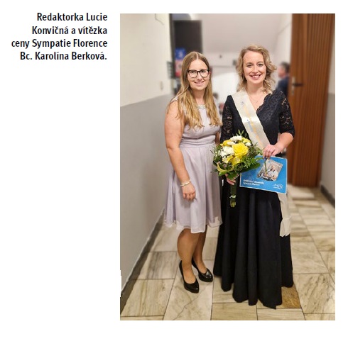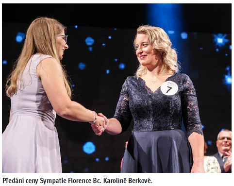 To ovšem nebyla jediná cena, která se ten večer udělovala. Náš časopis měl totiž vyhlášenou samostatnou soutěž – cenu Sympatie Florence. O vítězi nerozhodla žádná porota, nýbrž sami čtenáři, kteří hlasovali na našich sociálních sítích. Za každé srdíčko nebo like (palec) jsme započítali jeden hlas. A kdo tedy vyhrál? Cenu Sympatie Florence si z Náchoda odvezla Bc. Karolína Berková, zdravotně sociální pracovnice, která pracuje v Oblastní nemocnici Náchod. Paní Berkové tímto ještě jednou gratulujeme a přejeme jí příjemný wellness pobyt i čtení našeho časopisu, jehož předplatné od nás dostala.
