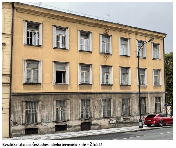Sanatorium Čs. Červeného kříže v Praze II., Žitná ulice č. 24, bylo jako léta minulá často vyhledáváno, takže počet ošetřovaných za uplynulý rok dostoupil počtu 724 osob, tj. o 107 osob více nežli v r. 1924. Ze 724 přijatých osob bylo 259 mužů a 455 žen […] Propuštěno bylo 696 osob, tj. 253 mužů a 443 žen, takže koncem roku zůstalo 14 osob v ošetřování. Personál byl týž jako v roce minulém. – Operací bylo provedeno celkem 657. Sanatorium bylo v provozu po dobu 11 měsíců. Sanatoriu došlo 400 přípisů, odesláno 630 přípisů. Ošetřovacích dnů bylo 7.492; výlohy za osobu denně 42,76 Kč. V Roentgenologickém kabinetu sanatoria bylo vyhotoveno 186 snímků, 448 prosvícení, léčeno 88 osob, u nichž vykonáno 570 ozařování a 253 diathermií.