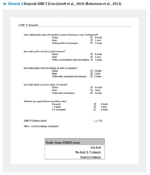 14. MALMSTROM T.K., MORLEY J. E. SARC-F: A simple questionnaire to rapidly diagnose sarcopenia. J Am Med Dir Assoc 2013; 14(8): 531–532. doi: 10.1016/j.jamda.2013.05.018.