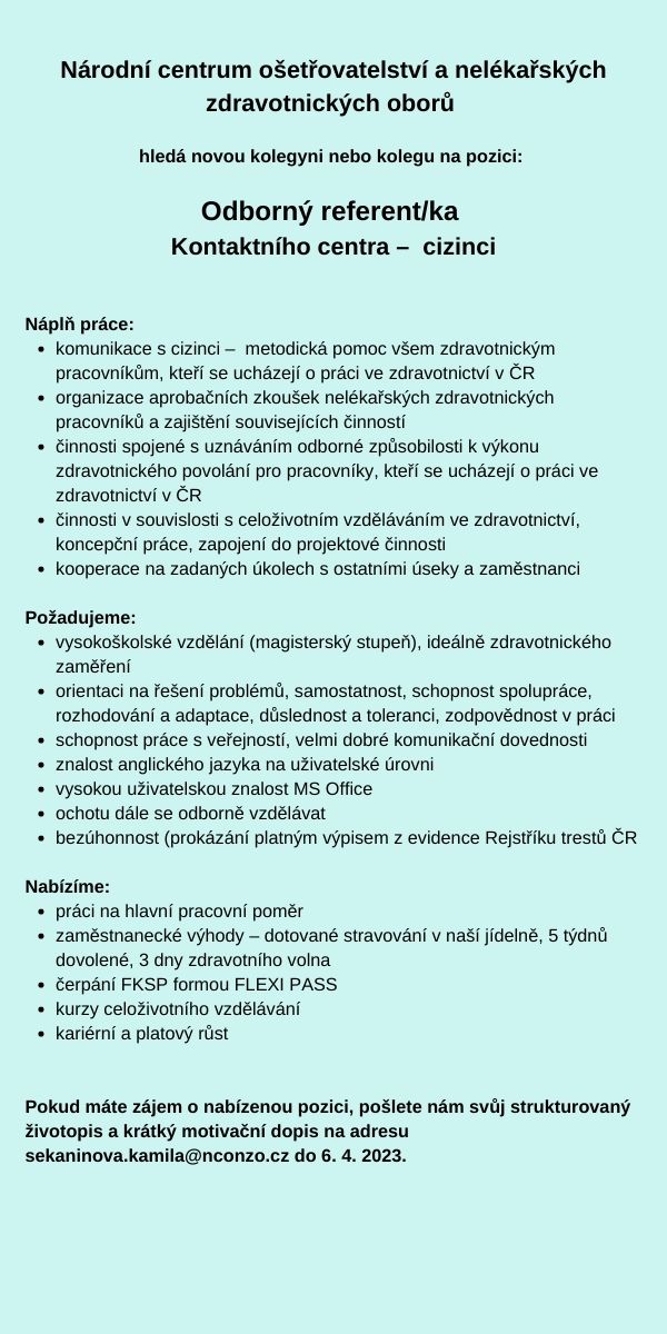 Zpět na přehled zaměstnání Odborný referent/ka – NCO NZO Brno |