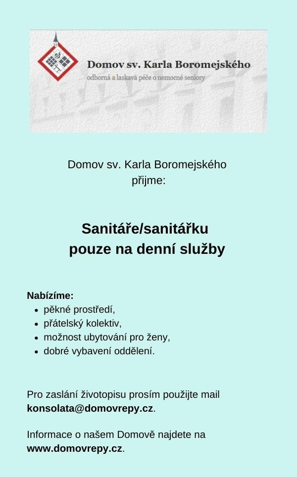 Zpět na přehled zaměstnání Domov sv. K. Boromejského přijme sanitáře/sanitářku |