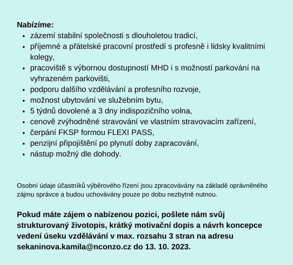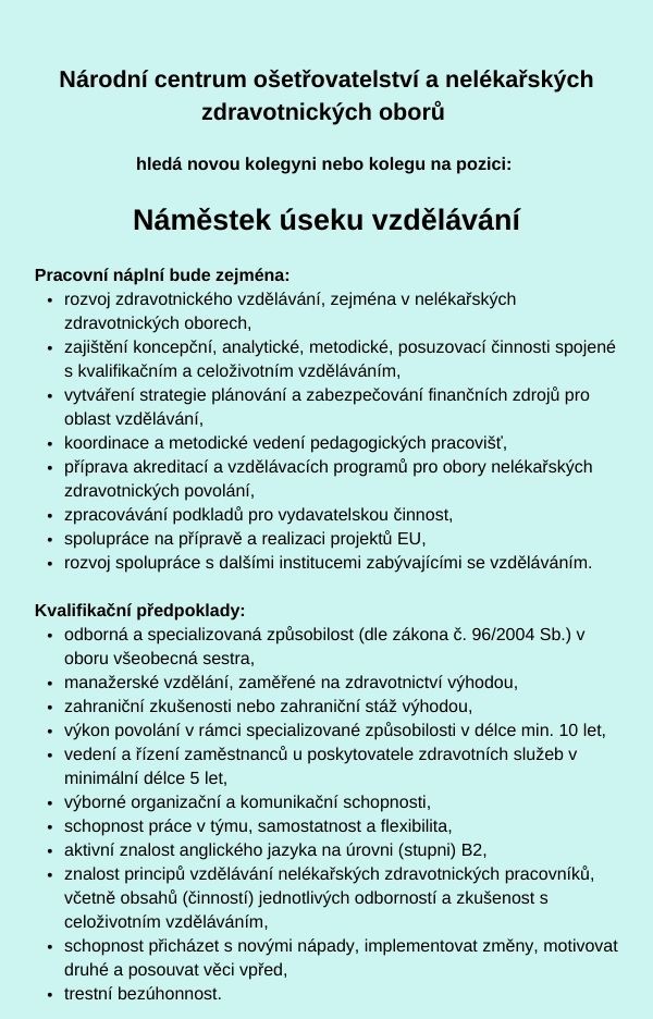 Zpět na přehled zaměstnání NCO NZO Brno – Náměstek úseku vzdělávání |