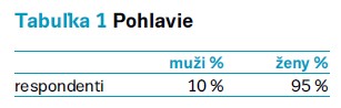 Do prieskumu sa zapojilo 50 (100 %) respondentov z toho 45 ženského pohlavia (90 %) a 5 mužského pohlavia (10 %) (tab. 1).