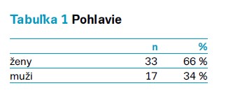 Do prieskumu sa zapojilo 50 respondentov, z toho 33 žien (66 %) a 17 mužov (34 %) (tab. 1).