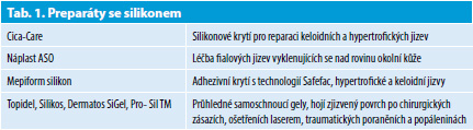Silikon – ve formě silikonových plátků, gelu nebo krému je v poslední době využíván často u čerstvých jizev, ale i jako prevence po užití některých chirurgických metod. Mechanismus nebyl dosud objasněn. Jeho aplikace je jednoduchá, ale musí být dlouhodobá a důsledná. Pacient by měl ponechat silikonový preparát v jizvě minimálně 12 hodin denně a aplikovat je po dobu několika měsíců. Symptomatická úleva je poměrně rychlá, ale trpělivost pacientů bývá při takovém ošetřování omezená. Nejčastěji užívané jsou plátky ze silikonového gelu. Vyrábí se ze silikonového eleastomeru pro lékařské použití. Silikonový plátek je měkký, mírně přilnavý, polyesterovou síťkou zpevněný výrobek. Byl vyvinut pro léčbu hypertrofických a koloidních jizev, ale také pro rehabilitaci popálenin a jiných poranění kůže. Mírní bolestivost, snižuje na minimum tvorbu vystouplých jizev, změkčuje stažené svaly a zlepšuje rozsah pohybu. Plátky gelu lze přizpůsobit podle tvaru a velikosti jizvy, poté přiložit na kůži a upevnit nejlépe náplastí. Plátky lze omývat, nejlépe nedráždivým mýdlem, opláchnout vodou a po vysušení je znovu aplikovat na očištěnou jizvu. Plátek je potřeba nahradit novým až po 4 až 6 týdnech celodenního užívání.