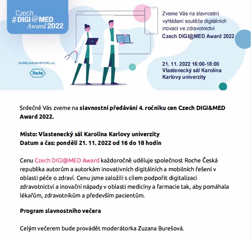 Srdečně vás zveme na slavnostní předávání 4. ročníku cen Czech DIGI@MED Award 2022.