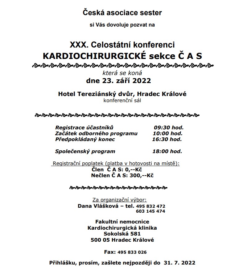 XXX. Celostátní konferenci KARDIOCHIRURGICKÉ sekce Č A S