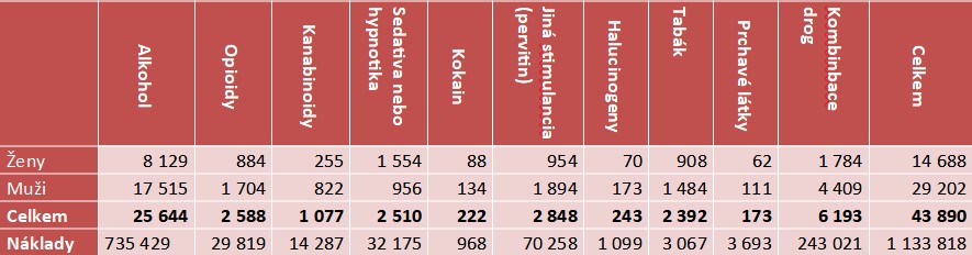 Na léčbu závislostí svých klientů vloni VZP vynaložila 1,133 miliardy korun. Za posledních pět let se jedná o nárůst téměř o 17 %. Počet pacientů přitom příliš neroste. Každoročně pomoc odborníka vyhledá 40 tisíc lidí. Nejvíc, tj. 65 % z nich, bojuje se závislostí na alkoholu, dvakrát více mužů než žen. Jedná se přitom jen o špičku ledovce, statistika zohledňuje případy, které se u toxikomanů a alkoholiků projevily duševní poruchou, s níž vyhledali odbornou pomoc hrazenou z veřejného zdravotního pojištění. Patří sem celá škála diagnóz, od samotné závislosti, přes akutní intoxikaci, až po různé formy psychotických poruch způsobených právě konzumací jedné či (velmi často) kombinací více drog. „Významná část lidí se k pomoci nedostává. Vládní zpráva zpracovaná Národním monitorovacím střediskem, uvádí, že je v Česku závislých až 150 tis. lidí, dalších přibližně 500 tis. lidí pak užívá alkohol nadměrně a v riziku závislosti se pohybuje,“ říká Jindřich Vobořil, Národní protidrogový koordinátor.