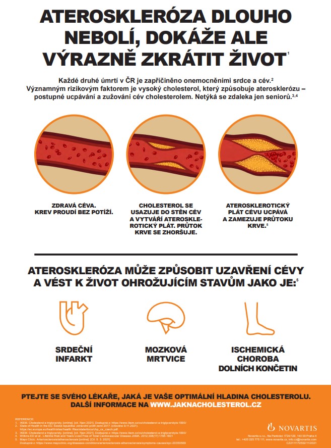 Ideální hodnota cholesterolu a úprava režimových opatření by měly být nastaveny vždy pro konkrétního pacienta. Důležitou roli v tom hraje on sám. Měl by se zajímat o svoji léčbu a pravidelně s lékařem zjišťovat hladinu cholesterolu, držet se zdravého životního stylu a pravidelně brát léky2,7. Všechno ale závisí na prvním kroku, kterým je vyšetření cholesterolu. Neváhejte a zajímejte se o svoji hodnotu. Více se dozvíte na www.jaknacholesterol.cz.