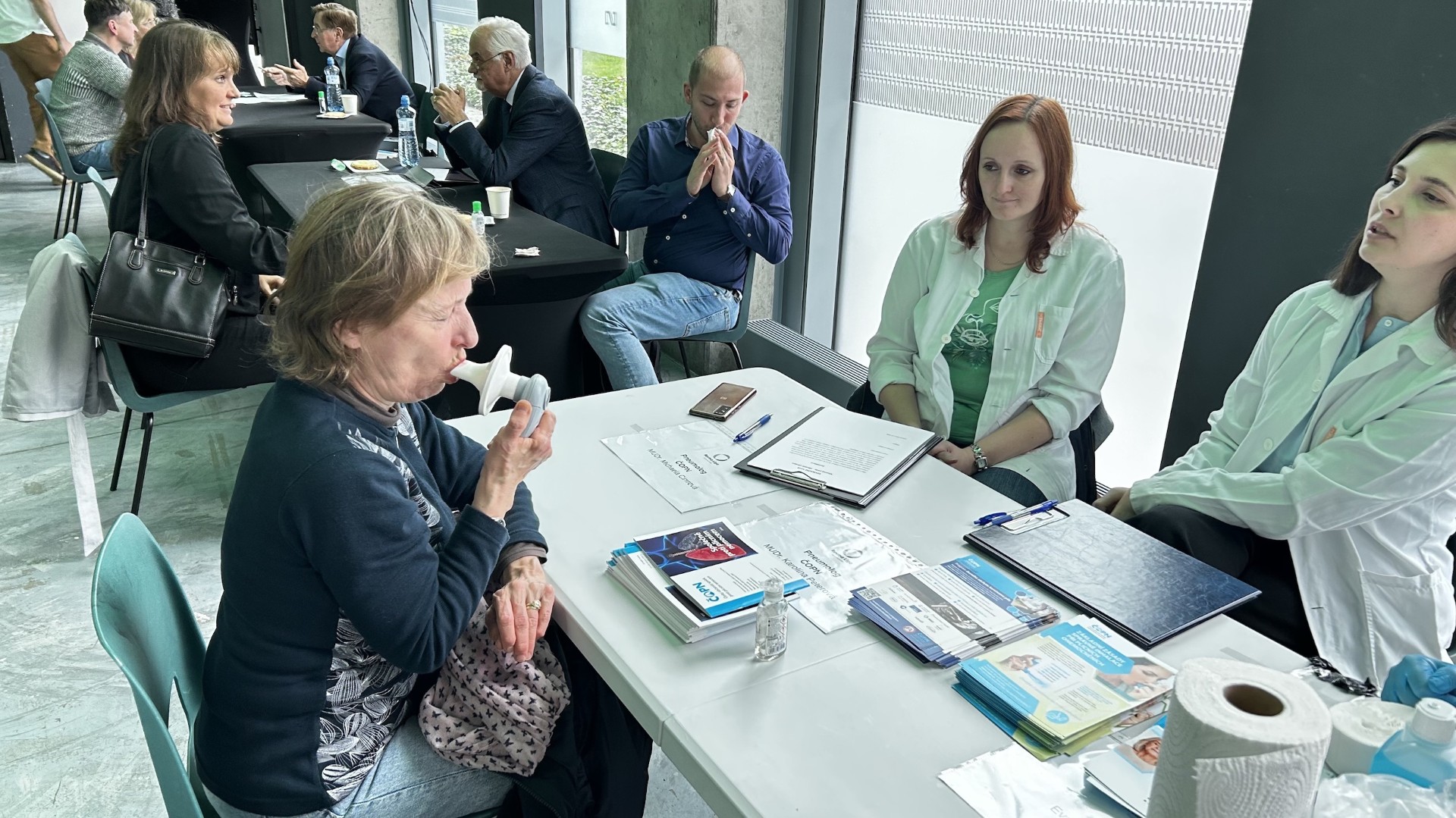 Foto 3. Návštěvníci akce u příležitosti Světového dne artritidy si nechali zkontrolovat stav svých plic – u pacientů s revmatickými nemocemi totiž může docházet k vazivovým změnám na plicích, tzv. plicní fibróze.