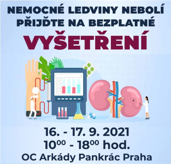 Proto bude veřejnosti k dispozici bezplatné testovací místo IKEM ve dnech 16. a 17. září 2021 v prostranství před obchodním centrem Arkády Pankrác v Praze. „Není potřeba s sebou nic nosit, pro laboratorní vyšetření poslouží kapka krve získaná drobným píchnutím do prstu. Rád bych tedy pozval každého, kdo chce vědět o zdraví svých ledvin, nebo jen bude mít cestu kolem,“ vzkazuje prof. MUDr. Ondřej Viklický, CSc., přednosta Transplantcentra a Kliniky nefrologie a vedoucí Transplantační laboratoře IKEM. Akce je součástí projektu Zdravé ledviny, který se věnuje dlouhodobému vzdělávání veřejnosti o prevenci.