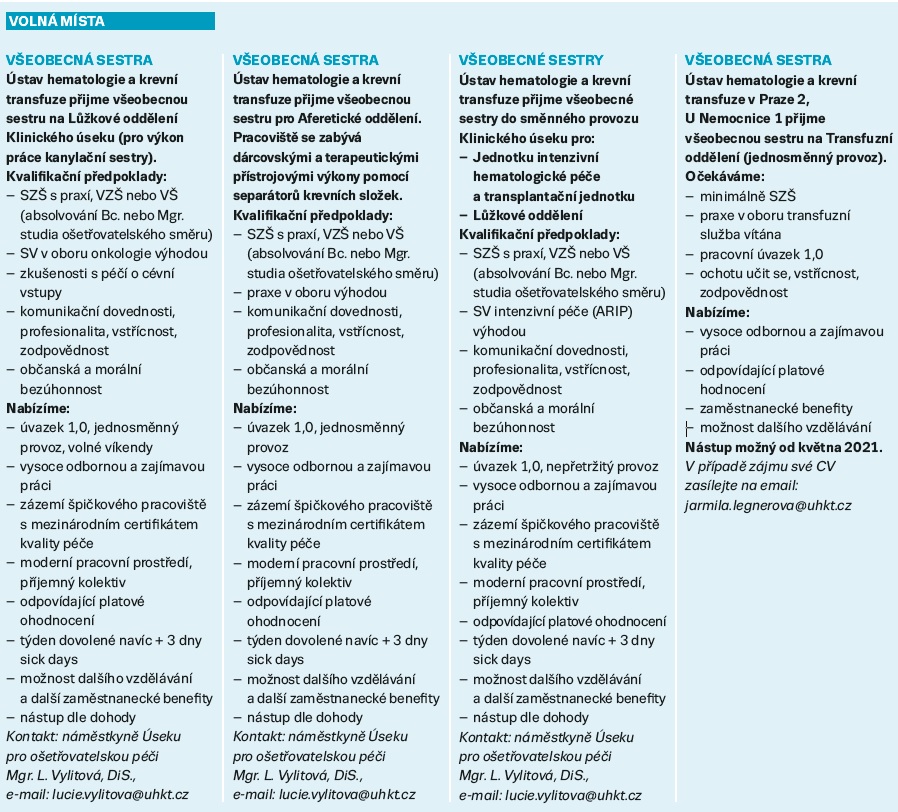 Ústav hematologie a transfuze hledá nové všeobecné sestry!