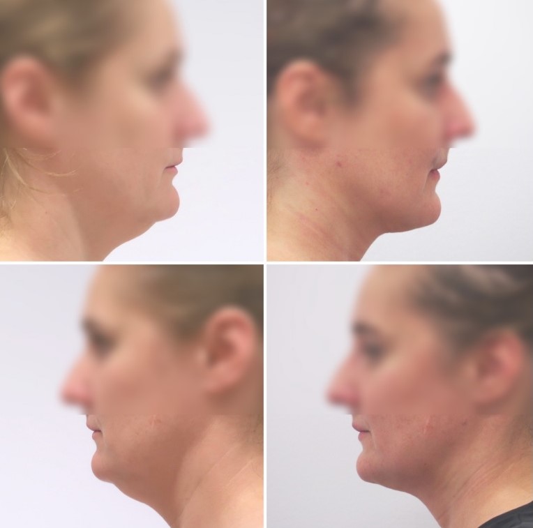 Foto: Liposukce podbradku před a po (zdroj: https://www.medicomclinic.cz/).