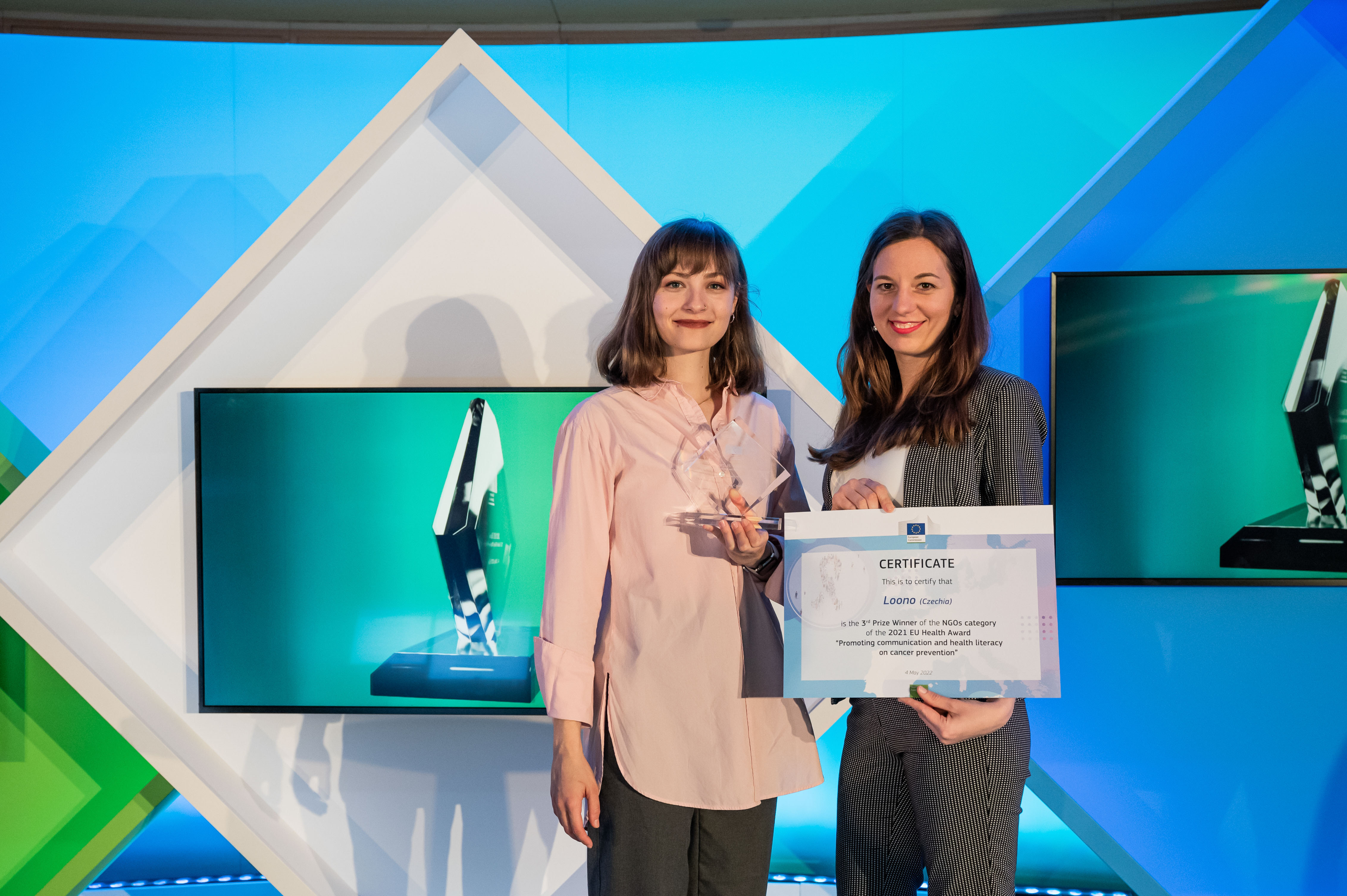 Loono převzalo v Bruselu prestižní ocenění EU Health Award 2021 za 3. místo v kategorii neziskových organizací, které se zabývají prevencí rakoviny u dětí a mladých lidí. Do letošního ročníku bylo zařazeno 110 projektů z 15 různých zemí EU.
