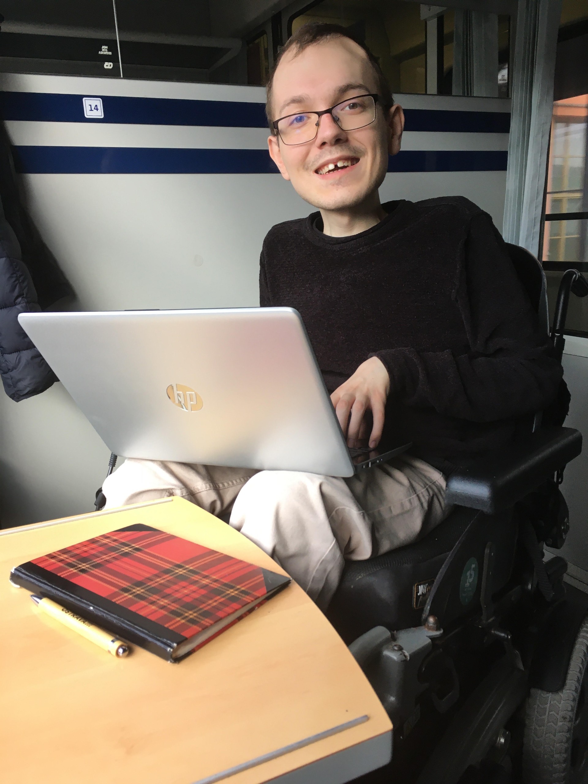 Adam se narodil v Hošťálkovicích u Ostravy. Zprvu nic nenasvědčovalo tomu, že by se neměl vyvíjet stejně jako ostatní děti. Postupně si však jeho rodiče začali všímat, že se neotáčí, nesedá si ani se nestaví. „Bylo mi asi rok a půl, když mě mamka vzala k ortopedovi. Ten hned poznal, že se jedná o neurologické onemocnění. Další testy potvrdily, že se jedná o spinální svalovou atrofii (SMA),“ vypráví Adam. Kvůli nemoci nikdy nechodil a od malička se pohybuje pomocí invalidního vozíku. Jeho svaly vlivem SMA postupně ochabují. Rodiče se rozhodli nechat ho vyrůstat mezi zdravými dětmi. Chodil proto do klasické školky i školy, odkud pak pokračoval na gymnázium. Péče o něj ležela v té době téměř výhradně na mamince, parťákem ve škole a na společných výletech se mu později stala jeho mladší sestra. „Mamka mě vychovávala v duchu hesla ‚nikdo ti zadarmo nic nedá‘. Tím se vlastně řídím dodnes. Vždycky byla nesmírně svědomitým pečujícím. Ale pokud se o vás takto intenzivně stará rodič, má to svá úskalí. Postupně jsem začal toužit po svobodě, někam se podívat nebo vyjet do Prahy. Tam se se mnou mamce nechtělo, tak jsem se zařídil sám,“ vysvětluje Adam. Kvůli své první cestě do Prahy oslovil kamaráda, se kterým se znal sotva pár hodin. Postupně se mu podařilo vybudovat si síť přátel, kteří mu pomáhají realizovat jeho plány. Na vysoké škole začal také častěji využívat pomoc asistentů. „Chtěl jsem být soběstačný, a tak jsem začal drobnými kroky. Protože jsem potřeboval pomoc téměř se vším, můj pokoj se stal ‚průchoďákem‘. Zavedl jsem proto pravidlo, že mamka mi nebude uklízet. To jsem si vždy vyřešil sám s asistentem. Šlo o drobnost, ale pro mě to bylo důležité,“ popisuje Adam první kroky, které časem vedly k úplnému osamostatnění. Velkou oporou mu byla rodina. Děda ho vozil do školy a babička mu pomáhala přepisovat přednášky nebo občas asistovala přímo ve škole. „Mám obrovské štěstí na lidi. Bez podpory rodiny bych nemohl fungovat,“ dodává Adam. Poslední roky mu navíc pomáhá léčba, která u dospělého pacienta s již silně rozvinutými příznaky onemocnění pomáhá zpomalit další rozvoj nemoci a stabilizovat ji. Protože ho lákalo dálkové studium v Praze, zvolil si magisterský program na Metropolitní univerzitě Praha. Celé studium absolvoval v době covidové pandemie. „Kvůli covidu jsem se do školy podíval jen dvakrát. Jednou na přednášky a pak až na státnice,“ doplňuje Adam. V té době se také seznámil se svojí přítelkyní. Oslovil ji na seznamce. Krátce si psali, a když se chystal do školy na první přednášky, domluvil si rande. „Svůj pobyt v Praze jsem si proto protáhnul na 2 dny. Zároveň jsem s asistentem vytvořil záložní plán. To pro případ, že by se na osobní schůzce ukázalo, že si s přítelkyní nemáme co říct. To se ale nestalo. Strávili jsme spolu tehdy skoro půl dne a hned jsme si domluvili další rande,“ vzpomíná Adam na osudové setkání. Dnes spolu bydlí a plánují společnou budoucnost. „Na rozdíl od zdravých lidí má náš vztah dvě roviny: pečující-pečovatel a partner-partnerka. Mezi tím se snažíme najít balanc. I proto je pro mě důležité, že můžu využívat služby osobní asistence,“ doplňuje Adam. Kromě rodiny jsou pro Adama důležité i jeho projekty. Pracuje jako sociální pracovník v pacientské organizaci SMÁci, zároveň funguje na Ostravské univerzitě jako konzultant z praxe. Přibližně před 6 lety založil neziskovou organizaci Ekvilibro a pořádá besedy pro školy a školky, kde dětem vysvětluje, jak vypadá život s handicapem. „Ve svém životě potřebuji pořád něco dělat a posouvat se vpřed. Když mi fyzicky není nejlíp, sedím alespoň u počítače a píšu. Moje tělo už ví, že fyzická bolest mě nezastaví, a tak na to jde přes psychiku. V minulosti jsem se proto několikrát potýkal s úzkostmi. Nejhorší období jsem zažil ve chvíli, kdy jsem kvůli zhoršenému zdravotnímu stavu musel dát všem aktivitám na rok vale,“ vysvětluje Adam. O svém životě a cestě za větší samostatností vypráví také v jednom z rozhovorů podcastové série neSMAzatelní. Podcast pomáhá nahlížet do života pacientů s diagnózou SMA a řeší otázky, které se týkají partnerských vztahů, výchovy dětí, osamostatňování se, rodičovství nebo například budování kariéry. Řeší také to, co prožívají zdraví rodiče, když se jim narodí dítě s SMA, nebo jak při péči o partnera s SMA nevyhořet. Rozhovory je možné sledovat na webu www.nesmazatelni.cz.